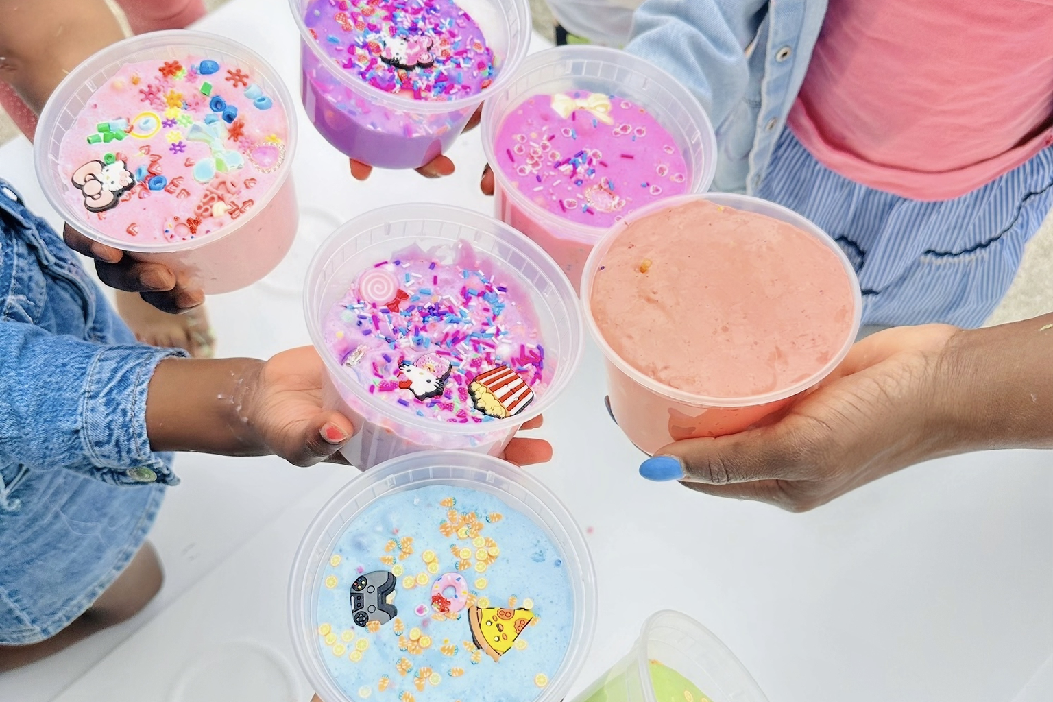 Our Slime-a-fun is the ultimate hands on activity where kids get to mix, knead, and customize their own gooey creations. With a rainbow of slime colors, scents,